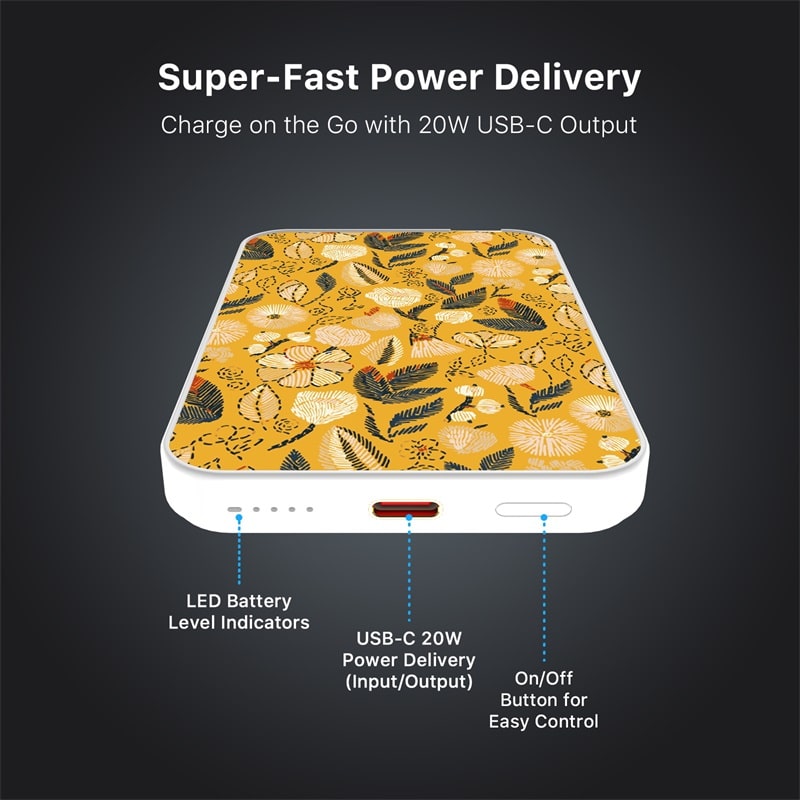 MyBat Design Lab 5000mAh Magnetic Wireless Power Bank – White – Floral Stitch
