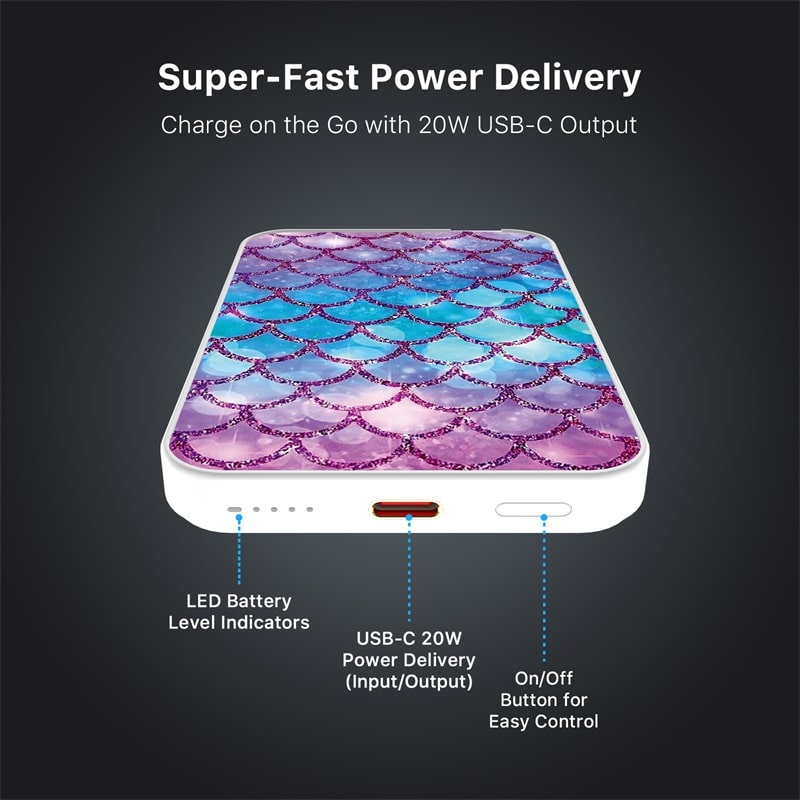 MyBat Design Lab 5000mAh Magnetic Wireless Power Bank – White – Mermaid Scales
