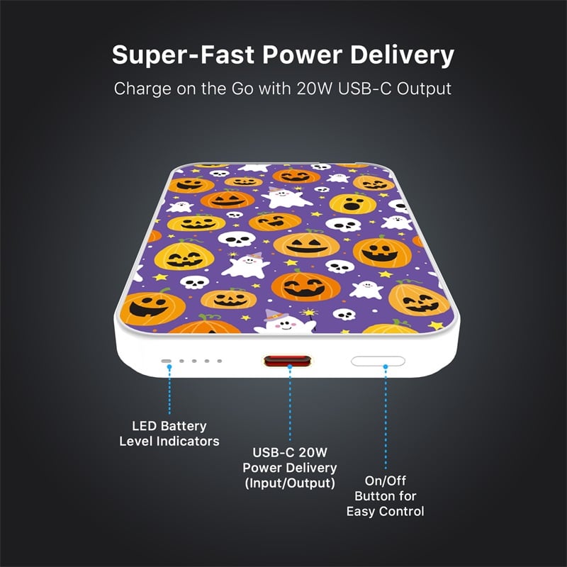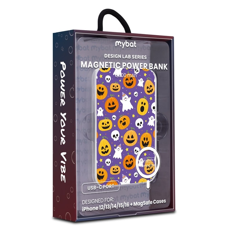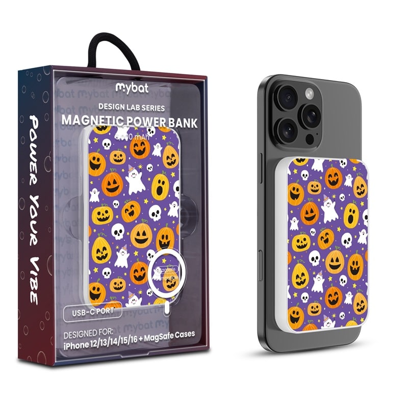 MyBat Design Lab 5000mAh Magnetic Wireless Power Bank – White – Pumpkin Party