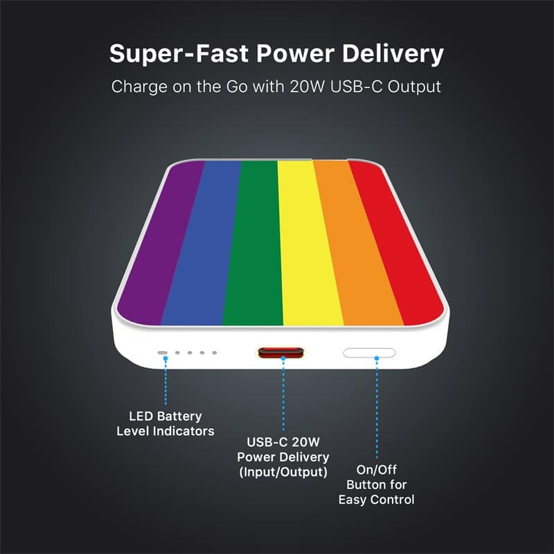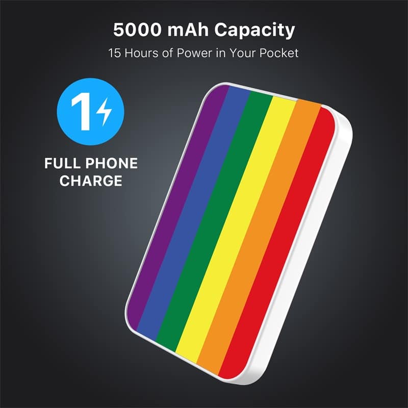 MyBat Design Lab 5000mAh Magnetic Wireless Power Bank – White – Rainbow Stripes