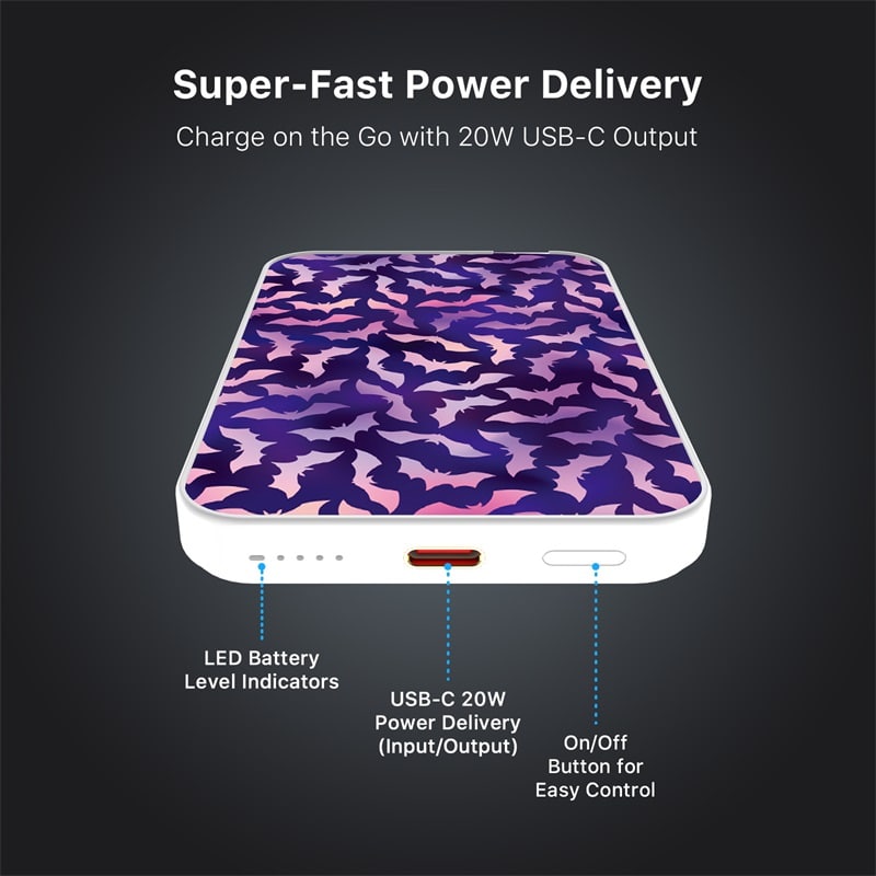 MyBat Design Lab 5000mAh Magnetic Wireless Power Bank – White – Twilight Bats