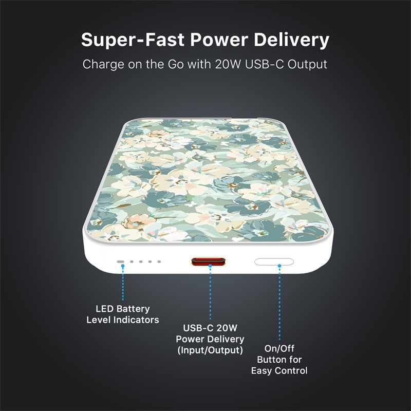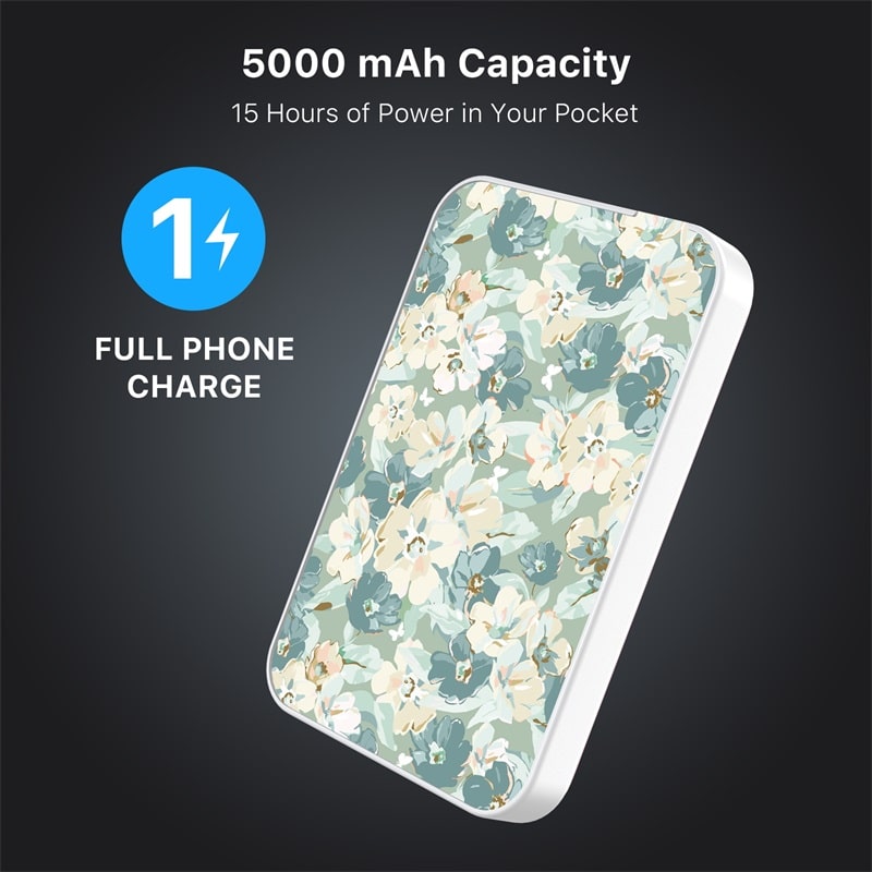 MyBat Design Lab 5000mAh Magnetic Wireless Power Bank – White – Vintage Garden