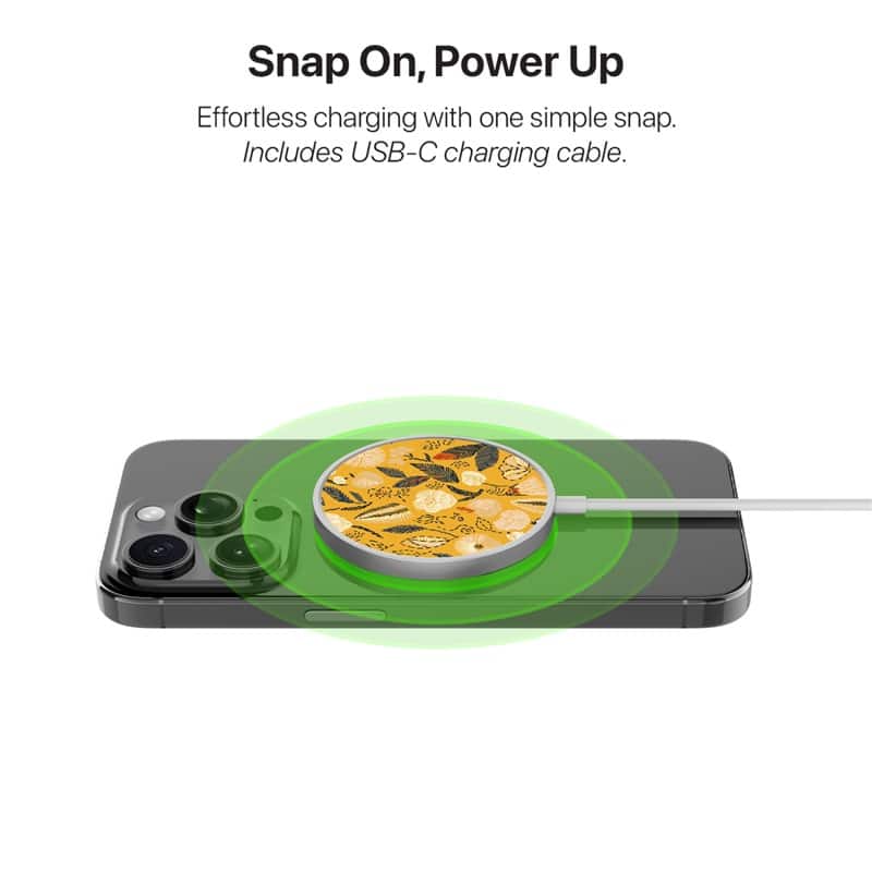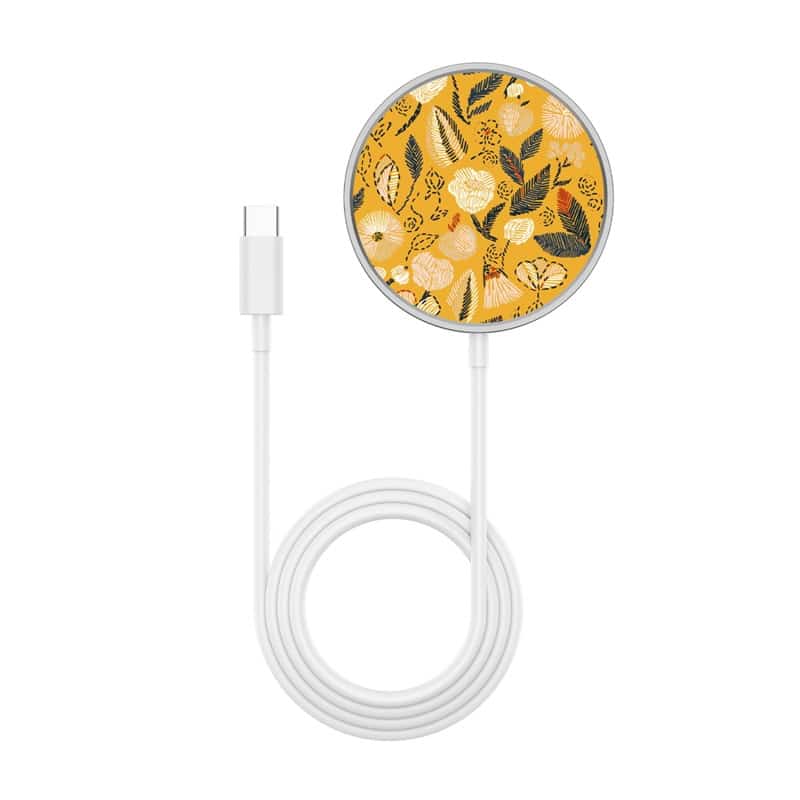 MyBat Design Lab Magnetic Wireless Charger – Silver – Floral Stitch