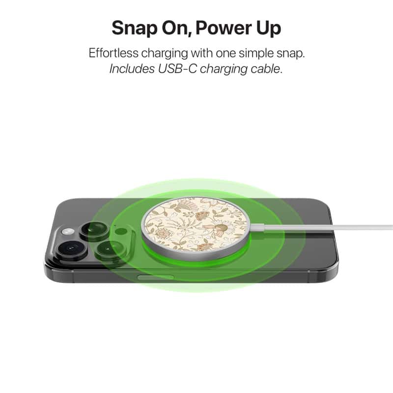 MyBat Design Lab Magnetic Wireless Charger – Silver – Jacobean Floral