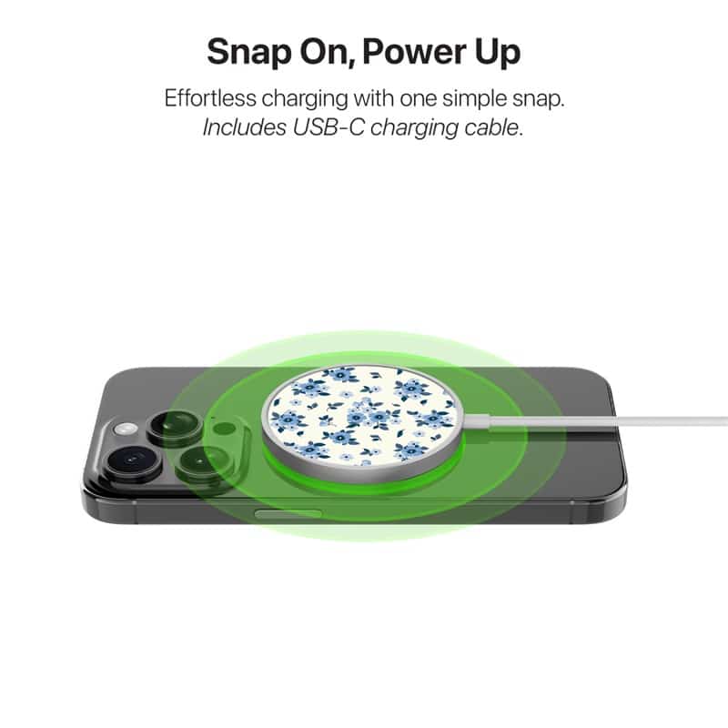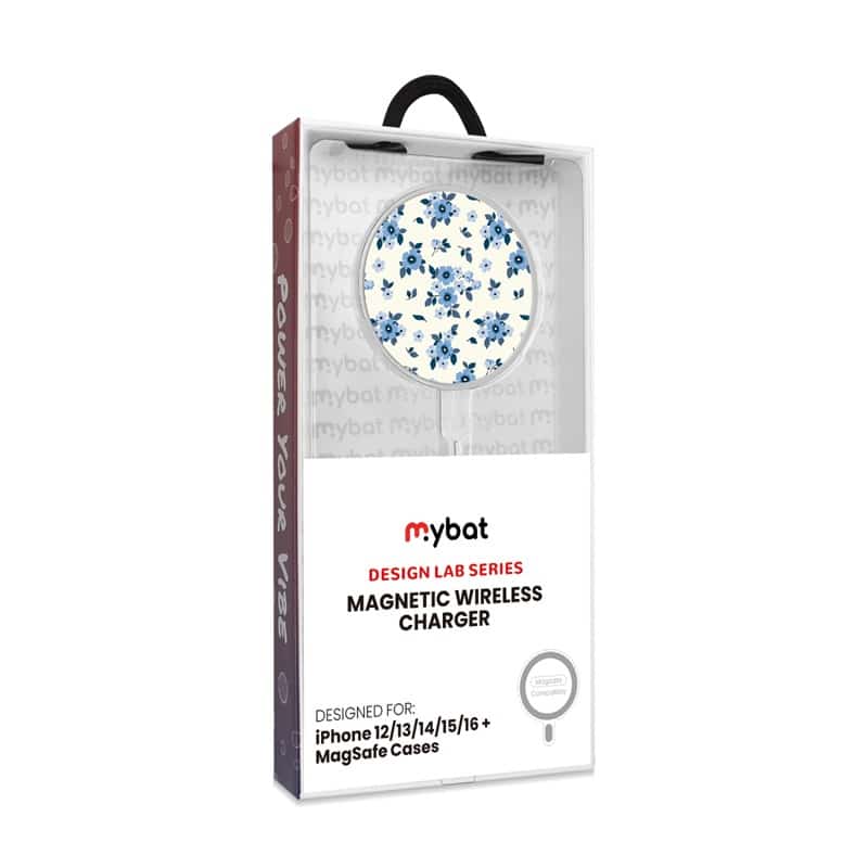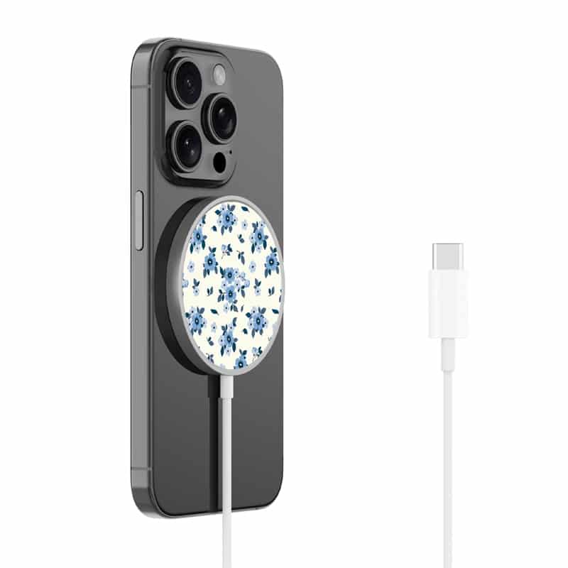 MyBat Design Lab Magnetic Wireless Charger – Silver – Porcelain Petals