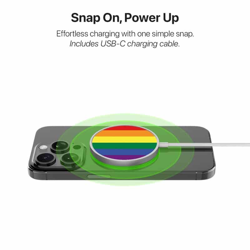 MyBat Design Lab Magnetic Wireless Charger – Silver – Rainbow Stripes