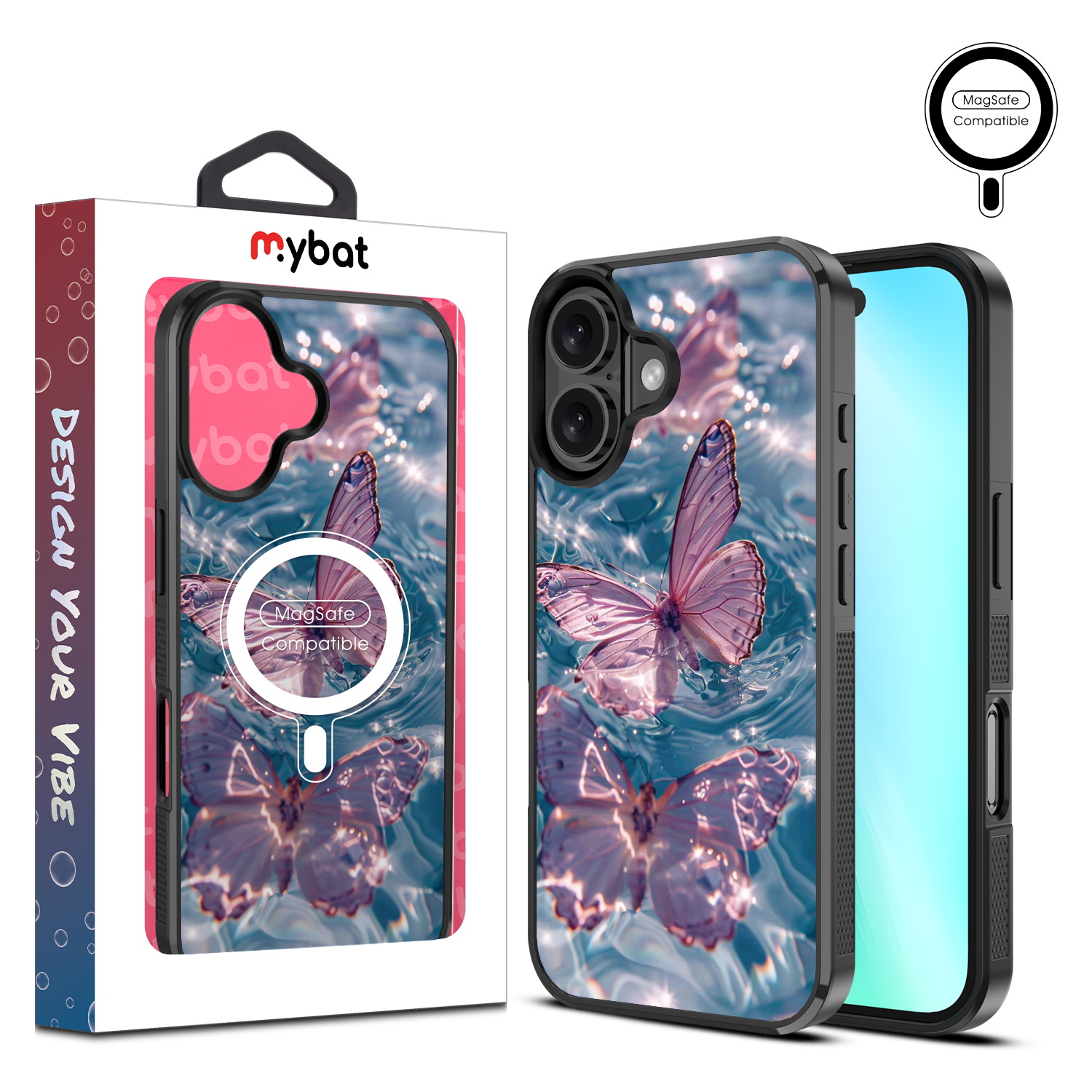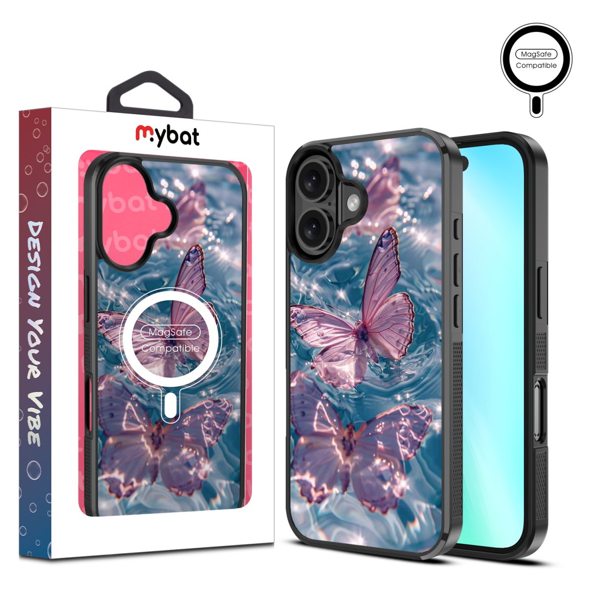 MyBat Design Lab Series MagSafe Case for Apple iPhone 16 – Floating Butterflies
