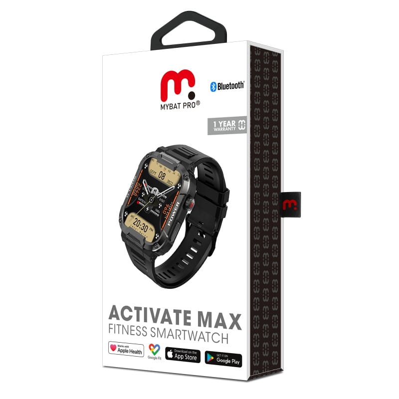 Gear up and maximize your performance with the Activate Max Fitness Smartwatch! This rugged and tactical smartwatch pairs seamlessly with the Glory Fit app, available for iPhone and Android, to help you track and improve your health and fitness goals. Monitor your daily steps, heart rate, blood pressure, sleep quality, body temperature, and more with its advanced 24-hour health management features. Stay connected with call, text, and app notifications, manage music playback, and time your workouts with the built-in stopwatch and alarm presets. Built for endurance, the Activate Max boasts military-grade toughness with IP68 water resistance and up to 10 days of battery life, ensuring it can keep up with even your most demanding days.