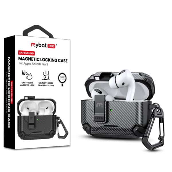 MyBat Pro SafeSound Magnetic Locking AirPods Case for Apple AirPods Pro 3 with Wireless Charging Case – Black